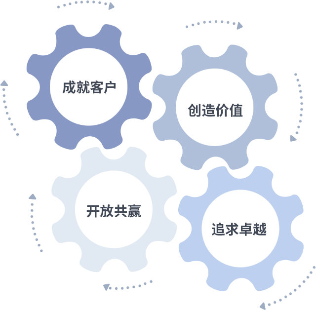 成就客户是一切决策的出发点,创造价值是衡量所有工作的标准,追求卓越是赛博体育做事做人的态度,开放共赢是赛博体育的格局也是最终的结果。价值观的齿轮环环相扣,推动着组织里的每个人不断向前。